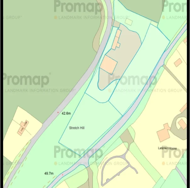 The area in blue is 1.92 acres and in green is 0.42 acres. The areas for the existing buildings are storage shelter.